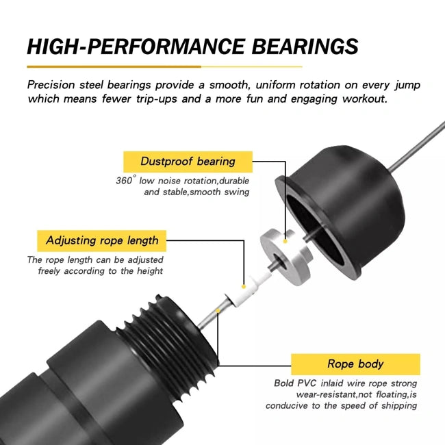 4.High-Performance Bearings:Precision steel bearings provide a smooth, uniform rotation on every jump which means fewer trip-ups and a more fun and engaging workout.