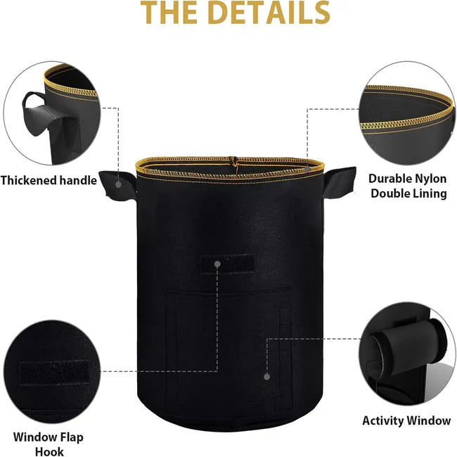 - Durable & Breathable Material: Made from high-quality, nonwoven fabric, these grow bags promote healthy root growth by allowing air to flow through the soil.