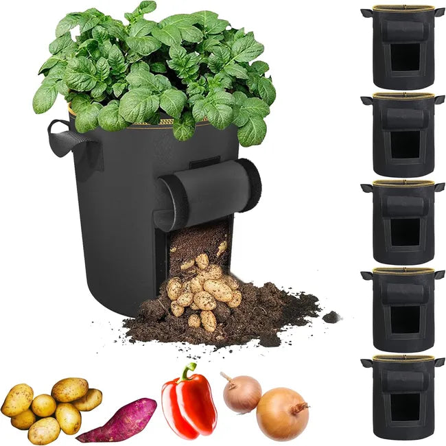 Grow Bags with Flap & Handles, Breathable Nonwoven Cloth(5 Pack)