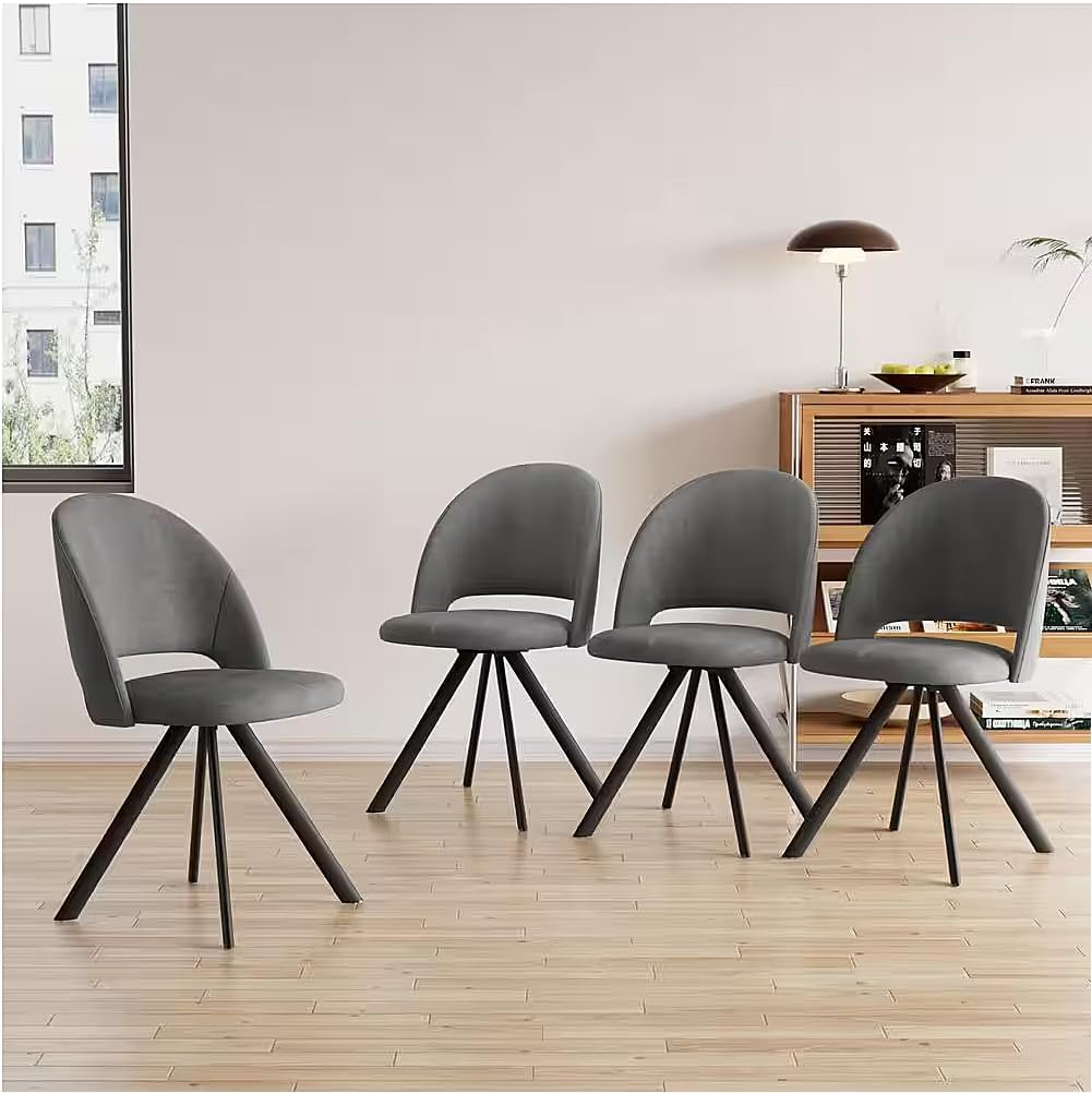 Modern Dining Chairs 4 Sets - Thick Cushions, Upholstered Fabric Side Chairs for Dining Room & Kitchen, Gray