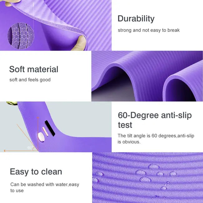 Purple Anti-Tear Yoga Mat - Non-Slip Gym Moisture Proof Equipment Sport Pilates Fitness Workout